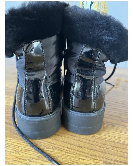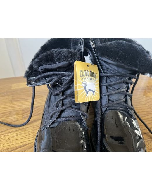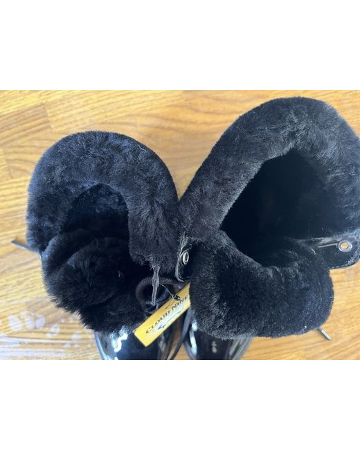 Beautiful sheepskin patent boots. Lace up with high quality nylon around the ankle. Deep snow/ice tread. Brand new. Size 5