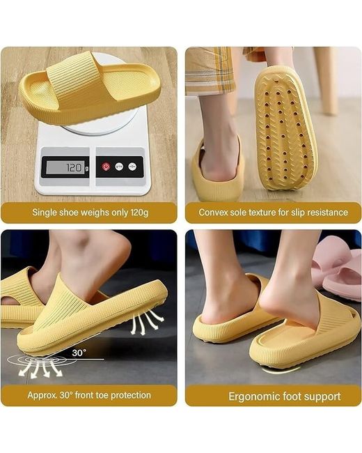 The super soft slippers use ultra-rebound soles to make you feel like you're walking on a cloud giving you a feet-in-the-clouds feeling. Cozisliders Original Sliders. 【Double anti-slip protection】: The inside of the cushion slippers has a diamond-shaped embossed design, and the sole has a wave-shaped embossed anti-slip design.