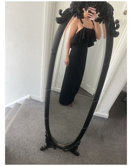 Women's Black Thick Strap Long Frill Front Backless Maxi Dress 8