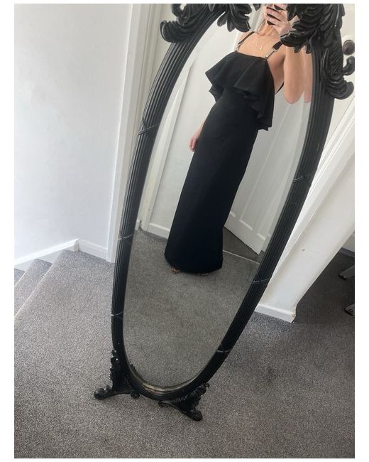 The polyester blend material ensures durability and easy maintenance, while the dress's long length and frill front design make it a stylish choice for parties or cocktails. This stunning black maxi dress by AQ/AQ is perfect for any occasion.