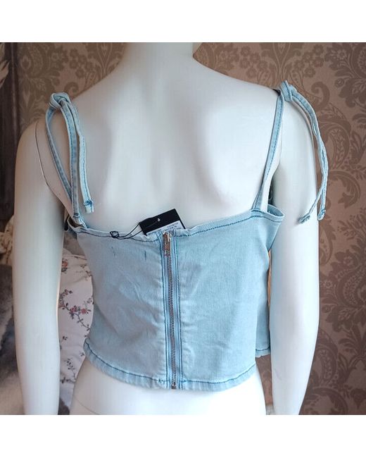 Elevate your casual look with this stunning light blue denim crop top from Blue Light. Featuring a square neckline and thin straps, this top is perfect for a night out with the girls or a casual day out. The ruched bust and tie straps add a touch of elegance to the overall look, while the elasticated top ensures a comfortable fit. Crafted from a blend of cotton, polyester and elastane, this top is both durable and stylish. The denim fabric type gives it a unique texture, perfect for any occasion. With a zip closure, this top is easy to put on and take off. Available in size 14, this regular fit top is perfect for women who want to look and feel great..........THANKS FOR VIEWING.....