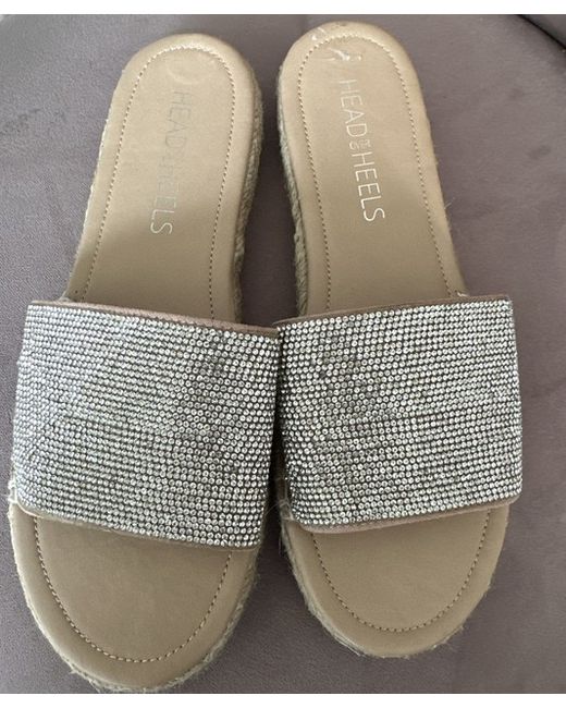 The Head Over Heels Sandals in UK size 5 and EU size 38 are a stylish slip-on option for women. Featuring a comfortable flat design with a synthetic upper material in a fabulous silver colour, these sandals are perfect for any casual outfit. The brand's reputation ensures quality and a fashionable look, making these sandals a must-have for any woman's shoe collection.