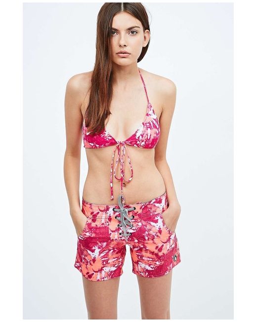 Volcom Graffiti Lace-Up Beach Shorts - Pink - Large - RRP £35 - New. These beach shorts by Volcom are crafted with an out-there print and feature a lace-up design to the front. Colour: Pink.