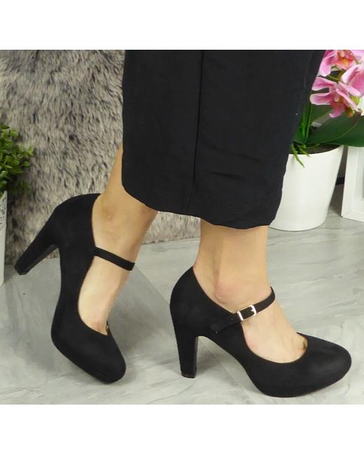 Elevate your shoe game with these stylish black Mary Jane heels. Perfect for any occasion, these shoes feature a round toe shape and a mid-height heel, measuring between 5-7.5cm. The faux suede upper material gives a touch of sophistication, while the iconic Mary Jane character adds a hint of nostalgia. These shoes are designed for women with UK shoe size 8 and EU shoe size 41. The court style and black colour make them versatile for any outfit, making a must-have addition to your shoe collection. Don't miss out on the chance to own these timeless heels.