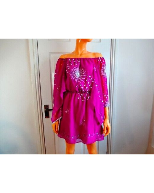 Women's Purple Phoebe Off-Shoulder Sequins Short Summer Dress RRP 78 UK10 NWT