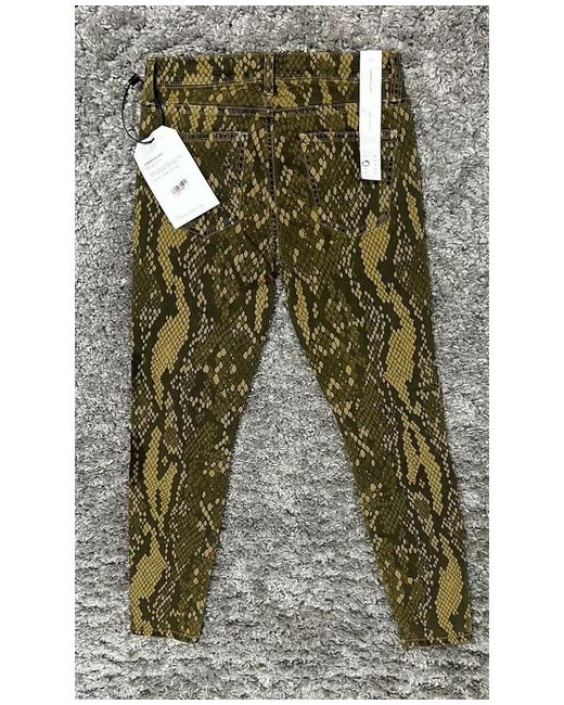 These retail at the over $200 range. New with tags Add some edge to your wardrobe with these Current/Elliott women's Python stiletto jeans in size 25. The jeans feature a unique animal print pattern in green, with a zip closure for a secure fit. The material is made of a blend of spandex, rayon and cotton, with a mid-rise waist of 25 inches and a regular fit. The jeans are designed with a skinny style and a 27-inch inside leg, making them perfect for any occasion. The accents of the snake theme add a touch of personality to the jeans, along with the pockets for added convenience. These jeans are a must-have for any fashion-forward woman looking to make a statement.