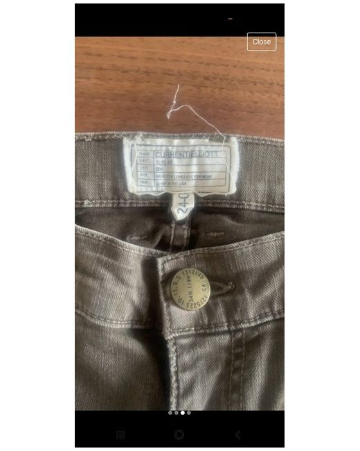 Elevate your wardrobe with these stylish green skinny jeans from Current/Elliott. The slim fit and low rise design provide a flattering silhouette, while the regular size is perfect for everyday wear. Made for women, these jeans are a great addition to any wardrobe. Crafted from high-quality materials, these jeans are perfect for any occasion. Whether you're going out with friends or running errands, these green jeans will make a statement. With its unique colour, it's sure to turn heads. Get your hands on this must-have item today!