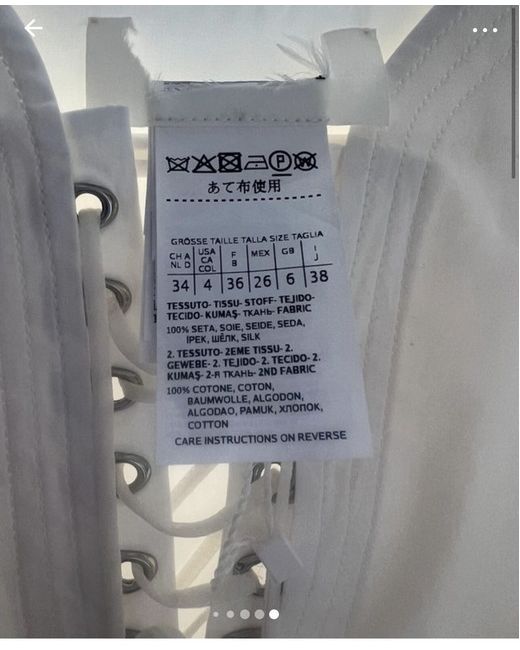 The dress is made from a blend of white silk and cotton, combining the lightness of silk with the comfort of cotton. The sleeves are wide and sheer, entirely crafted from silk, giving an ethereal and delicate effect. The waist is accentuated by a tie belt, which can be adjusted for a perfect fit, adding a touch of refinement and femininity to the overall design. This dress is ideal for elegant occasions, thanks to its combination of high-quality materials and sophisticated details. No label No Internal label