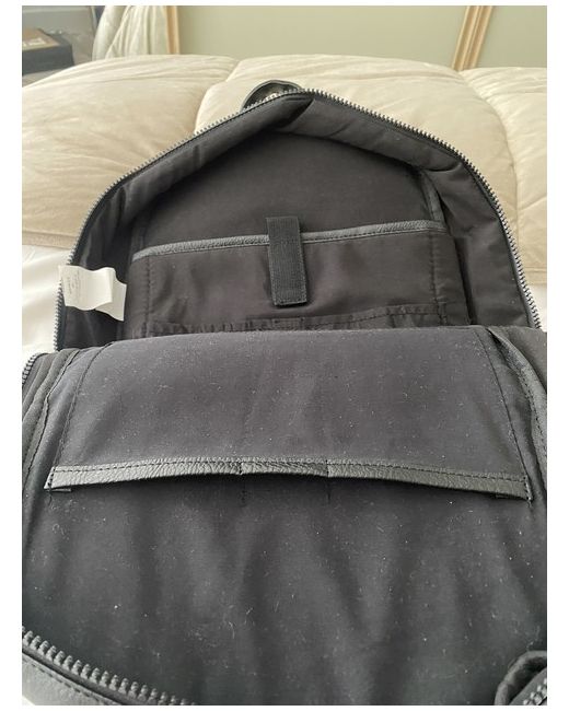 London Fog Backpack. Black original London fog ladies faux leather back pack.For cosmetics,laptop/tablet personal items. Overall Size external: 380mm long x 250mm wide. Internal pockets: Main internal pocket 240mm wide x 280mm deep. Internal cloth sleeve pocket 200mm wide x 180mm deep. Small internal pocket 200mm wide x 100mm deep. External pocket 200mm wide x 110mm deep.