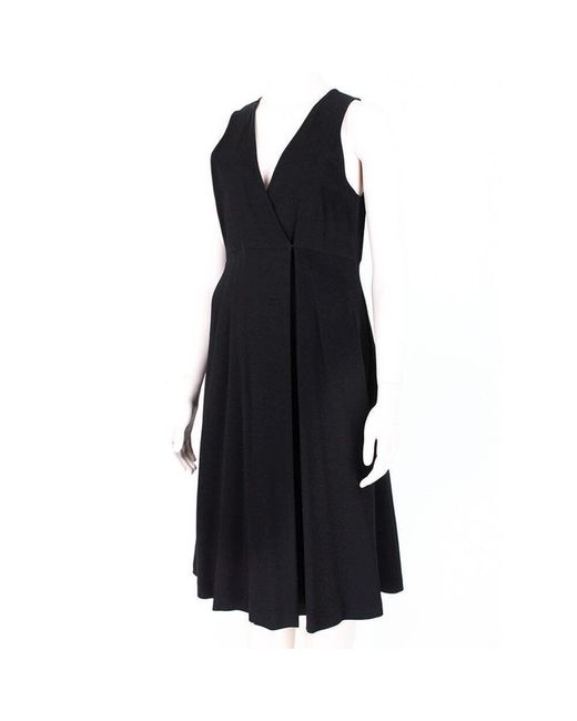 Donna Karan Dress Donna Karan Black DressColour: BlackMaterial: 97% viscose, 3% acetate Donna Karan dress in a black crepe fabricWrap effect to front with hook and eye and concealed stud button fasteningSlim fitting to the upper body with flare to the skirtPockets to sidesInverted pleat to to back of upper bodyUnlined.