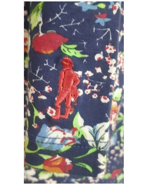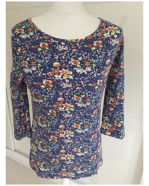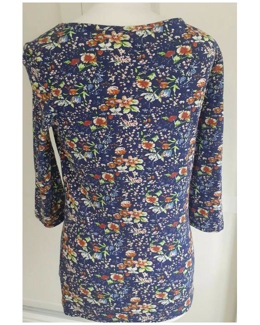 Floral print on blue background 3/4 length sleeves. 95% cotton and 5% elastane. Jack Murphy logo on left sleeve. Very pretty top. Dispatched 2nd Class signed for.