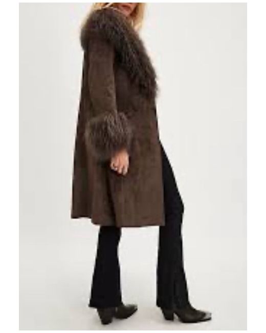 Penny is Charlotte Simone's signature style, made from faux suede and Mongolian trims with a tie belt for a flattering fit. Inspired by the traditional Afghan coat and the fabulous flair of the 70's. Colour: Tiramisu Composition: Faux Suede, Mongolian Lambswool Trims Wash & Care: Dry Clean Only Limited Edition Comes with tote New with tags Size 6-8 From the latest drop