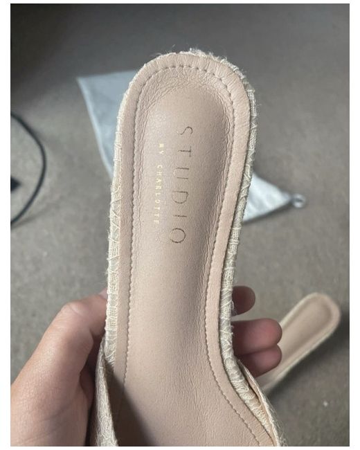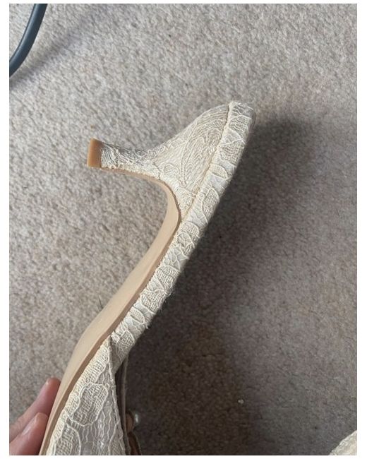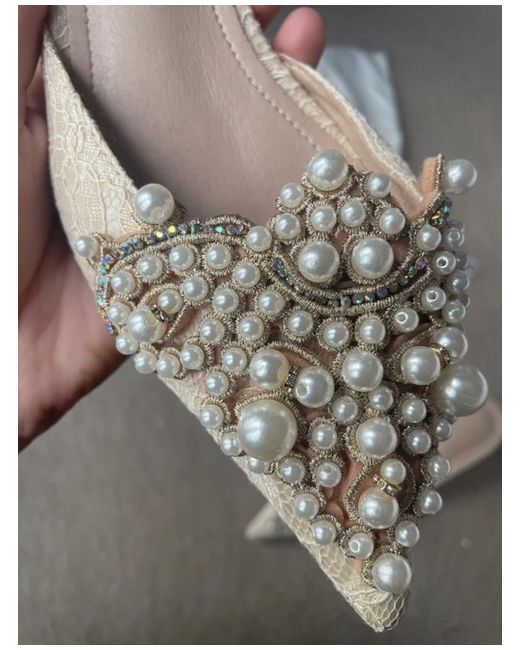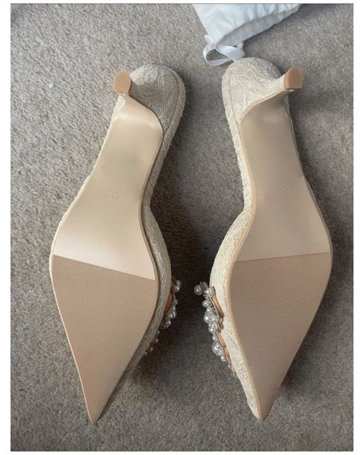 Never worn. Heel size: approximately 4.5cm - The Exquisite bridal shoe - Beautifully handcrafted - Pearl embellishment appliqué - Ultimate elegance - Chic kitten heel - Vintage vibes - Padded sole - Pointed toe - Ivory lace - Mules Comes with original bag- not box. As seen on Josie / Fashion Mumblr - josieldn https://www.youtube.com/watch?v=Znf60- WZqfo https://www.instagram.com/josieldn/ Elena Sandor - eat.wear.travel https://www.instagram.com/eat.wear.travel/