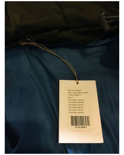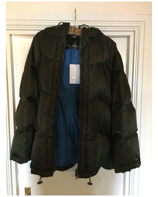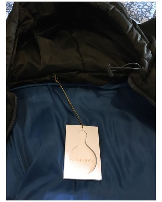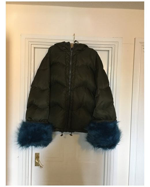 STINE GOYA designer TAYLOR Down Hooded Jacket in IVY size LARGE with contrasting colour TEAL removable faux fur cuffs BNWT RRP £440. hood is non-removable / attached.