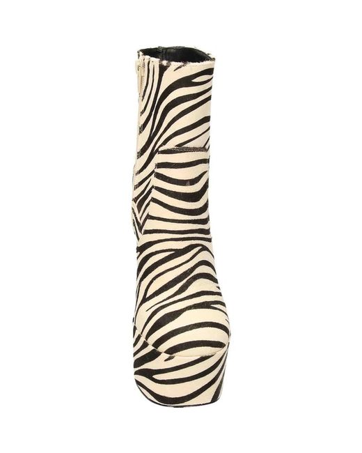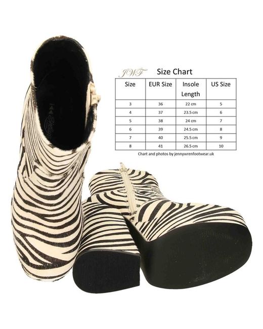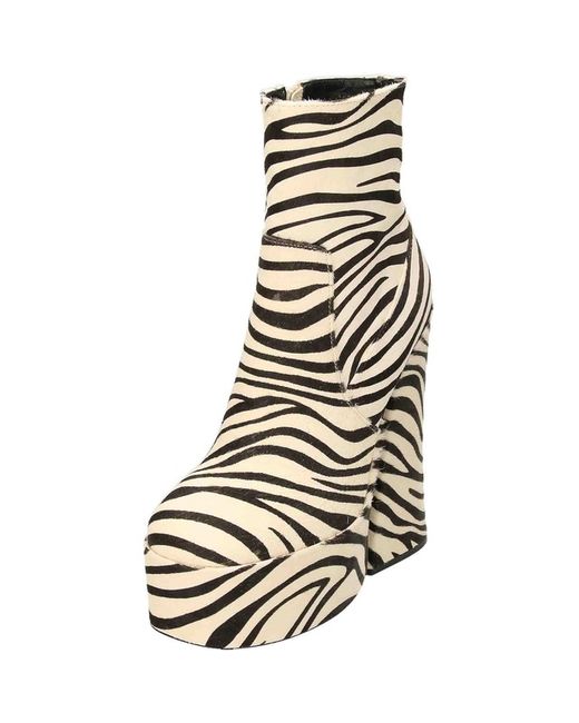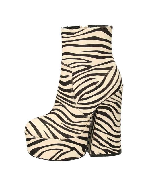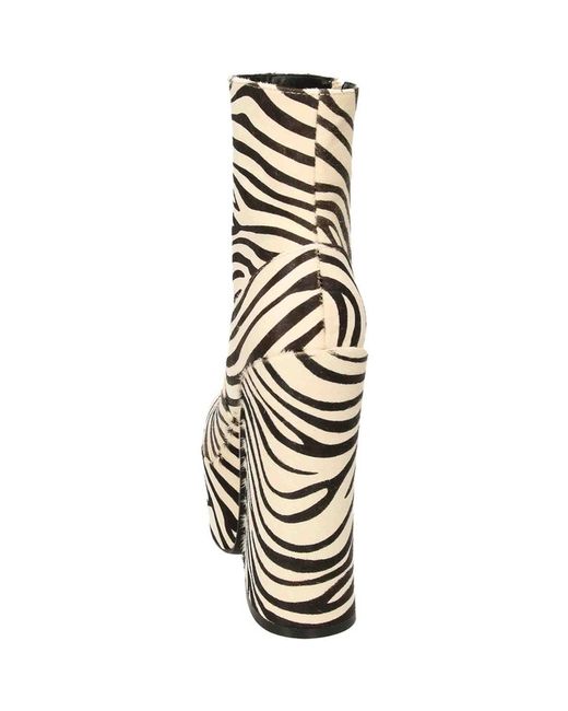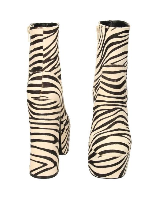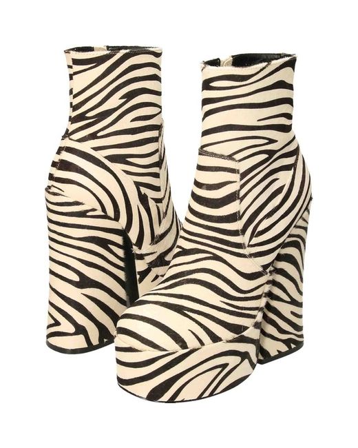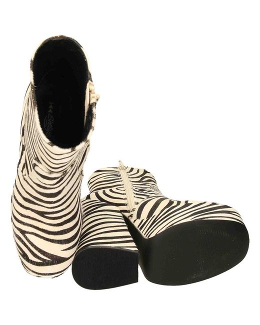 Ladies stunning leather ankle boots by Shellys London. Rogue by Shellys London. Enhanced with a short fur style black and white zebra pattern. Zebra pattern. Ladies Footwear. An elegant, stylish high heeled platform boot.