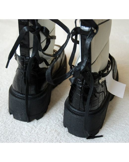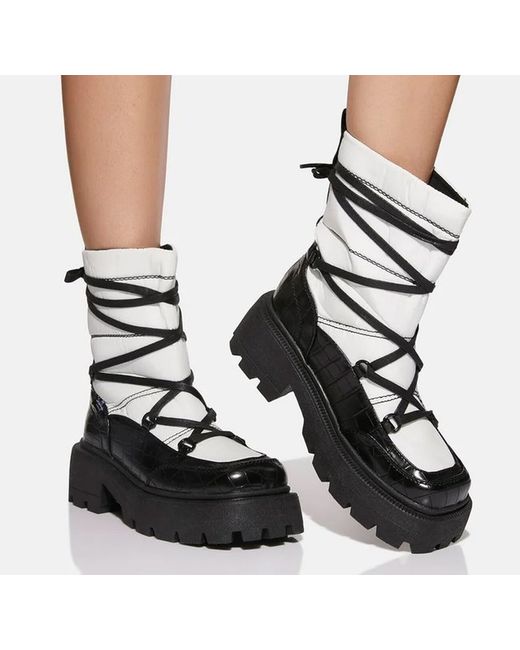 Shellys London. White Snowfall Snow Boots you're not afraid to get down and dirty. These snow boots have mixed synthetic and faux leather uppers, lace up closures, and treaded platform soles.