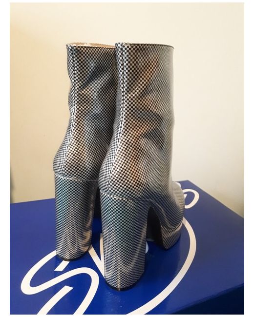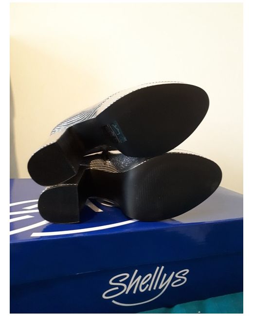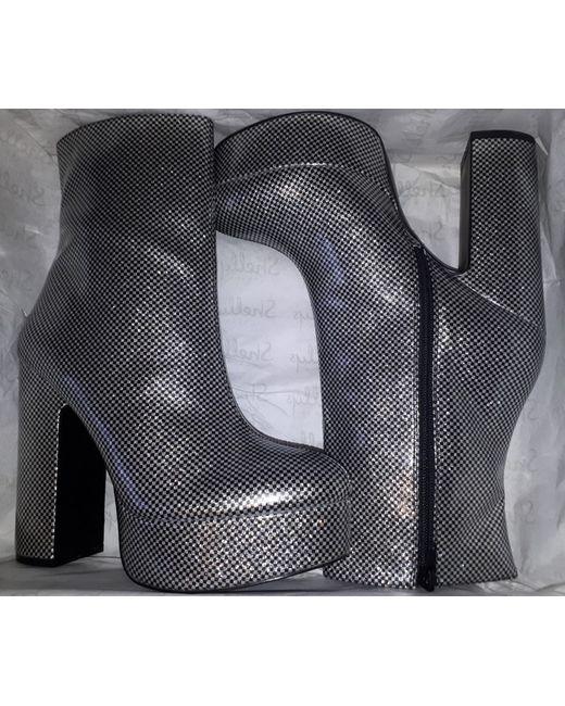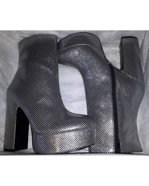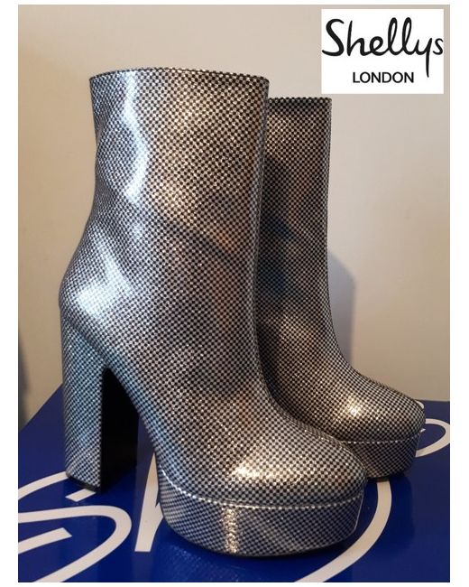 •Sophisticated modern platform boot by Shellys London. Black & Silver Issa Leather&Other Checkerboard Platform Ankle Boots. •High Quality Platform Heeled Ankle Boots. •Black and silver tone. Inner: Leather.