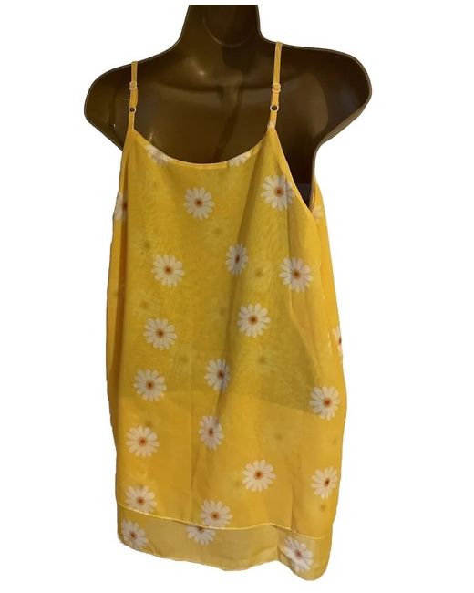 This beautiful yellow blouse is perfect for any occasion. The vibrant daisy flowers give the blouse a lovely feminine touch. It is a sleeveless blouse in size 2XL and is suitable for women of all ages. The blouse is made of high-quality materials, ensuring that it will last for a long time. The yellow colour adds a touch of brightness to any outfit, making it perfect for the summer season. The blouse is from a well-known brand, Flowers, and is a regular size. It is a great addition to any wardrobe and can be paired with jeans or a skirt for a stylish look.