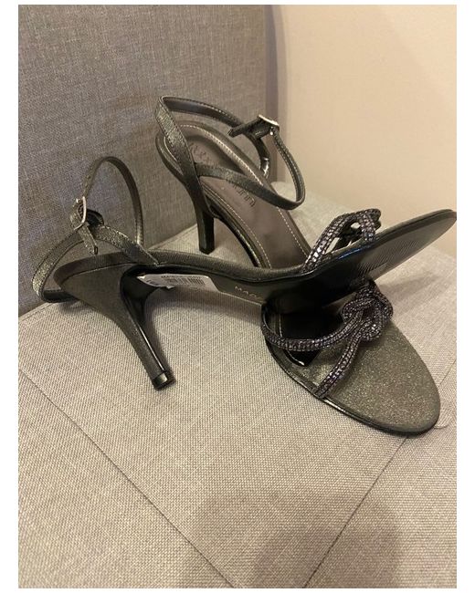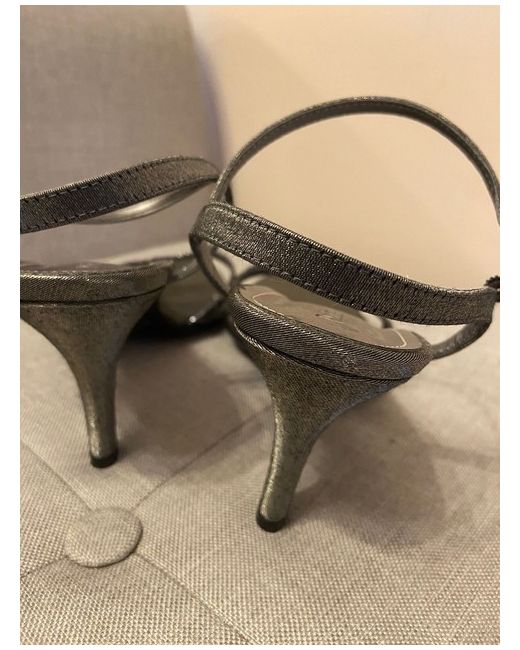 Grey-satin Beaded Strappy Heels 7W 5 New Without Box