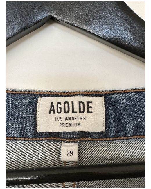 Brand new never worn high rise straight leg Agolde jeans size 29 in dark denim. Distressing on hems.