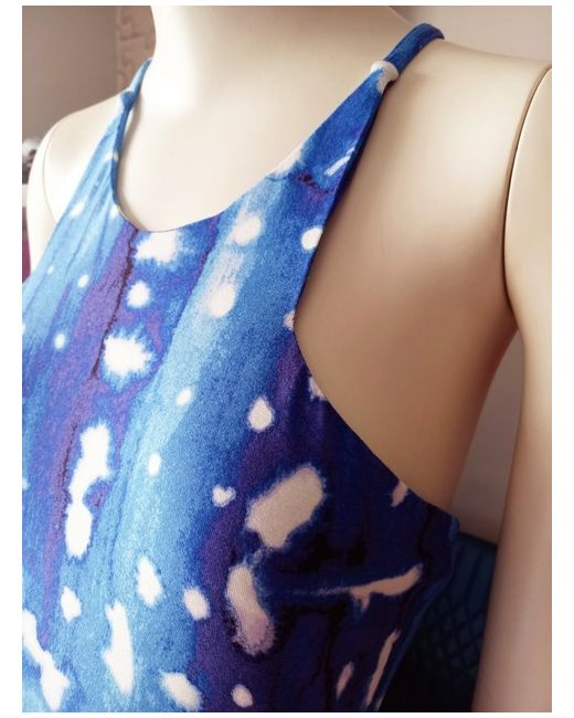 Women's Blue M WHITE TYE DYE EFFECT Drape Stretch MAXi twist back strap Dress