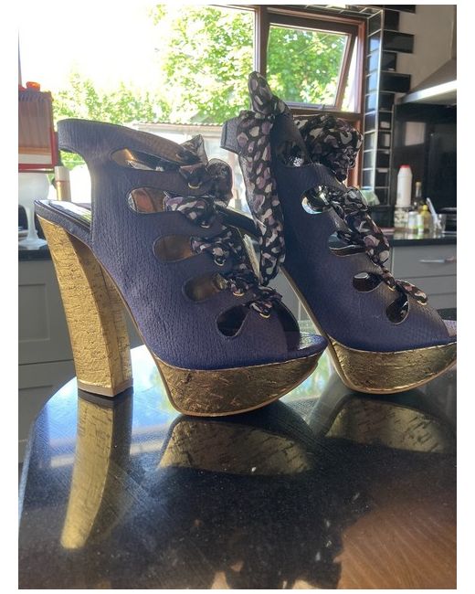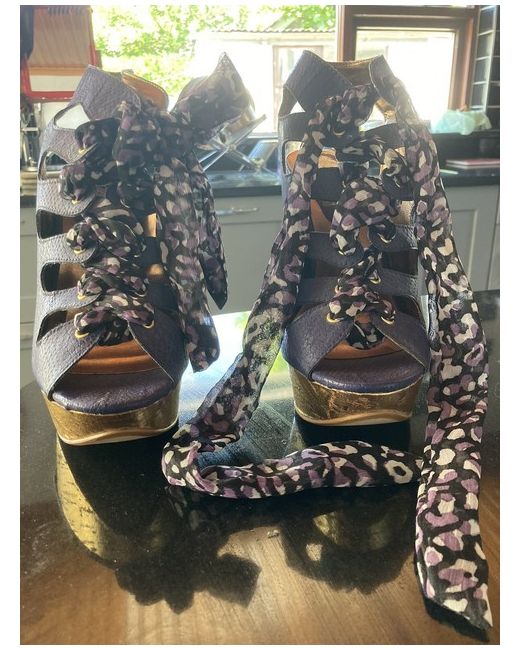Purple And Gold Heels. New, never worn out, they have been sitting in my room Lace up with pretty scarf like laces Any questions please feel free to ask