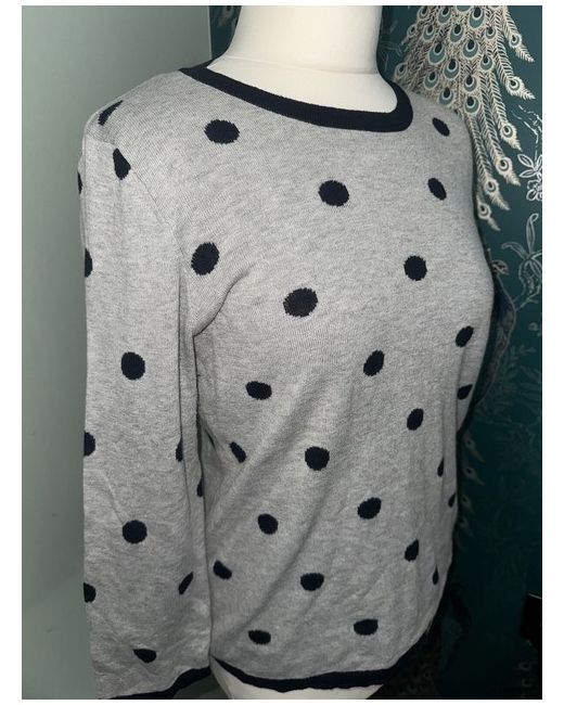 Elevate your wardrobe with this stylish Adrienne Vittadini sweater. Crafted with premium quality materials, this pullover jumper features a round neckline and long sleeves, making it a perfect choice for any occasion. The grey colour adds a touch of elegance to your outfit and the size M ensures a comfortable fit. This sweater is perfect for any fashion-conscious woman looking to add a touch of sophistication to their wardrobe. Whether you're dressing up for a night out or keeping it casual, this jumper is sure to turn heads. Don't miss out on the opportunity to own this must-have piece of clothing from Adrienne Vittadini. Grey with navy spots and trim Size medium New without tags never worn