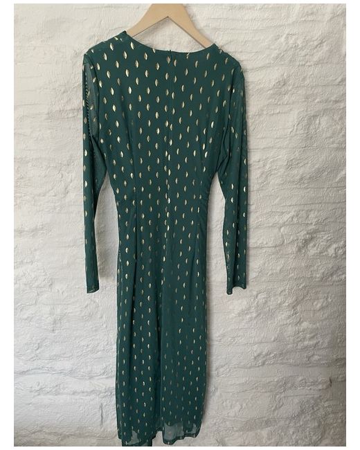 Lovely green false wrap dress with gold detail . Bought for a wedding but the colour didn’t match accessories . I’m a size 12 and it fits me perfectly .