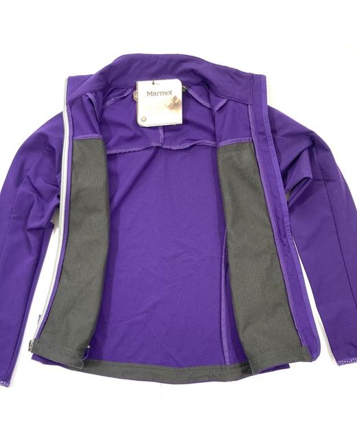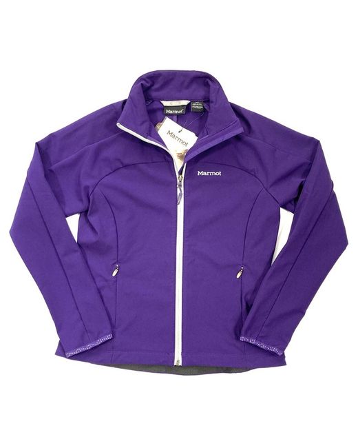 Ideal for active outdoor wear. Lightweight purple soft shell jacket. Reflective logos.