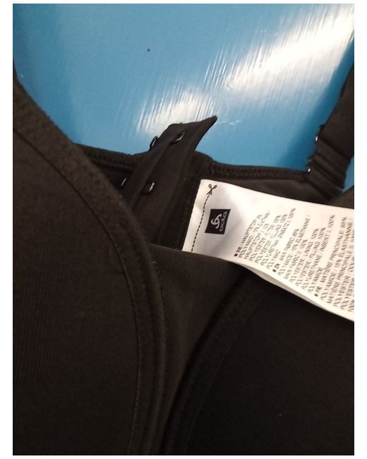 The product is a women's black support bra in size 75B, designed by the brand Odlo. This sports bra is specifically made for active occasions and provides support for the breasts during physical activities. Its sleek black colour makes it a versatile piece that can be easily integrated into various activewear outfits. The regular size type ensures a comfortable and secure fit for women who wear a size 75B.
