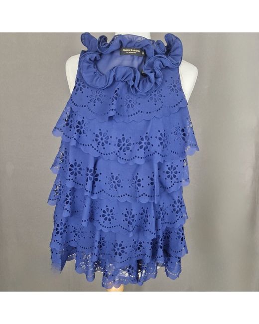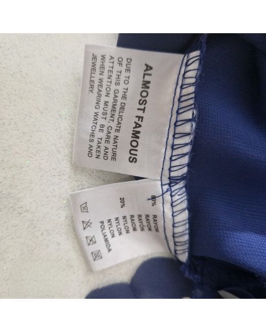 This navy blue blouse by Almost Famous is perfect for the fashion-conscious woman. The sleeveless top comes in a size 8 and is made of high-quality materials for a comfortable and stylish wear. The brand is well-known for its trendy designs, and this blouse is no exception. It is ideal for casual outings, work, or a night out, and can be paired with jeans or a skirt for a chic look.