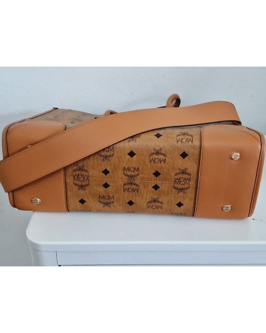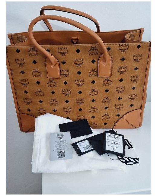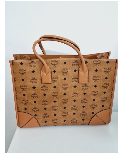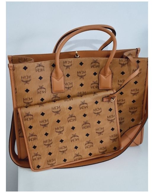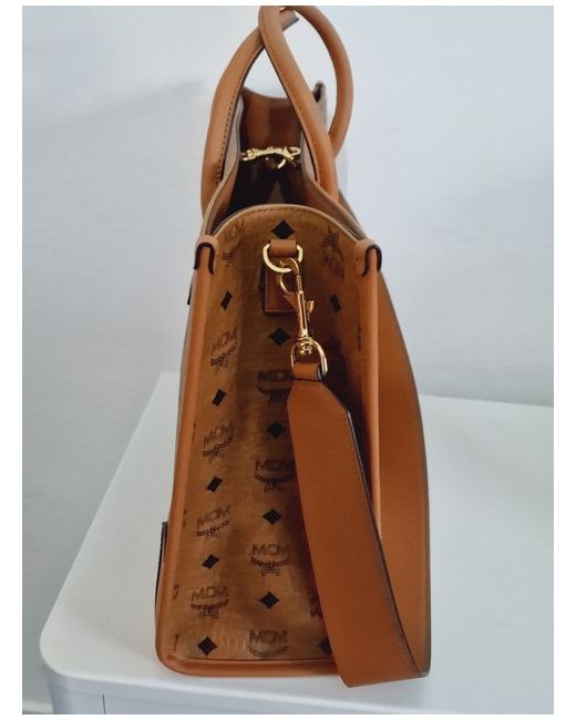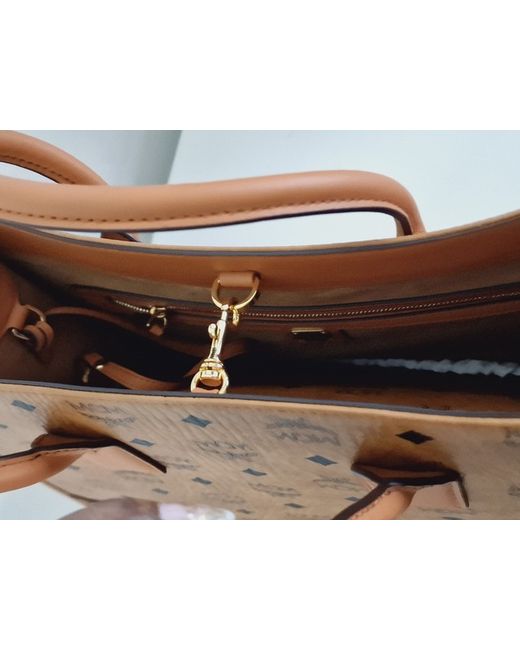 Visetos monogram coated canvas. Crafted from high-quality leather, this tote is perfect for any occasion. The exterior features a beautiful brown and gold colour combination, while the interior is lined with beige leather to add a touch of elegance.