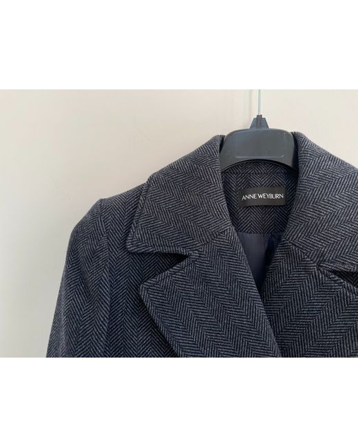 By ANNE WEYBURN. Blue Herringbone Double Breasted Coat. This ultra elegant herringbone coat is impeccably tailored. • Graphic herringbone print. 44% Wool 52% Polyester 3% Acrylic 1% Polyamide. original RRP £150.