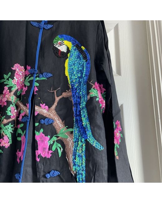 Butler & Wilson jacket size medium. Very, very pretty sequins bird and flowers. Wear on that night out , holiday or cruise. Over a plain jumpsuit etc. Thin cotton. So not too hot.