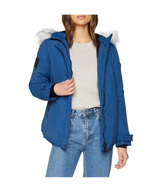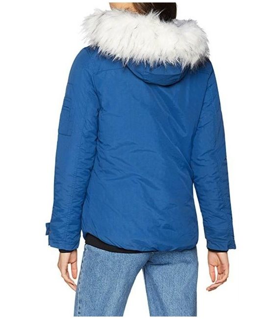 Springfield Womens Blue Parka In Blue Size Medium UK 8-10. BNWT Water resistant warm parka with detachable synthetic fur attatchment for hood so you can wear it how you like it. Marked up as US Size 4 equates to UK 8-10. Outer Shell 70% Polyamide 23% Acrylic 4% Modal 3% Polyester. Lining 100% Polyester