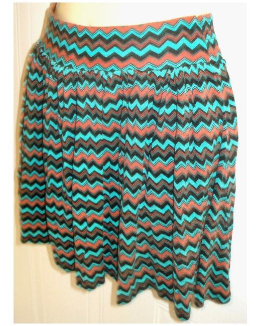 Multi coloured zigzag pattern in blues, tan, grey and black creates a really pretty design on this lovely casual skirt.
