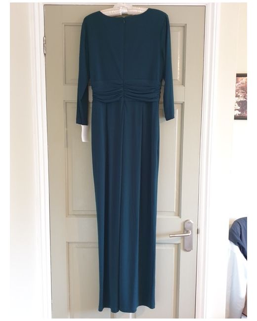 Beautiful Connected Apparel evening Jumpsuit in dark green. Full length wide legs, with flattering ruching all around the waistband and crossover v-neck. The entire bodice is lined. 3/4 sleeves and hidden back zip. US 6 / UK 10 (a slim 12 would fit too!) Brand new, tag still attached, excellent condition and quality.