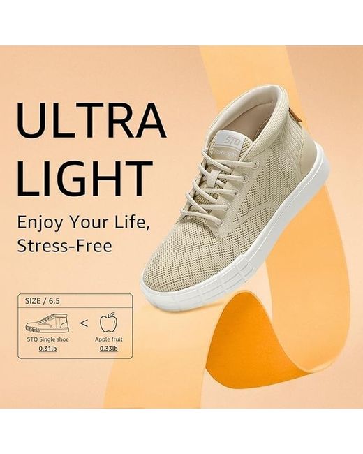 Embrace everyday comfort with these STQ high top trainers, a blend of style and practicality designed for women. In a versatile beige shade, these trainers are a size UK 7.5 and feature a supportive lace-up closure, ensuring a snug fit for all-day wear. The shoes boast a cushioned insole, providing excellent insulation and reducing the impact on your feet, whether you're running errands or enjoying a casual outing. The sleek sneaker design is perfect for elevating your casual wardrobe while offering the durability and comfort needed for active lifestyles.