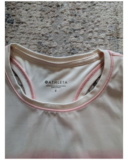 This Athleta tank top is the perfect addition to your activewear collection. With a striped pattern and sleeveless design, it's ideal for staying cool and comfortable during your workouts. Available in a lovely pink colour, this tank top is suitable for gym and training, yoga, as well as running and jogging.
