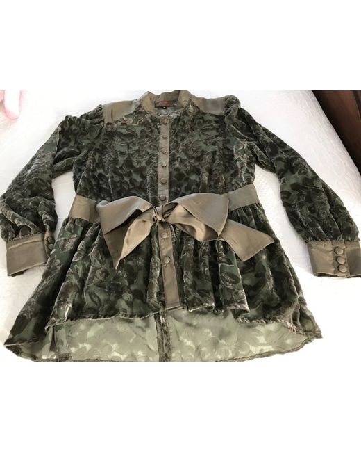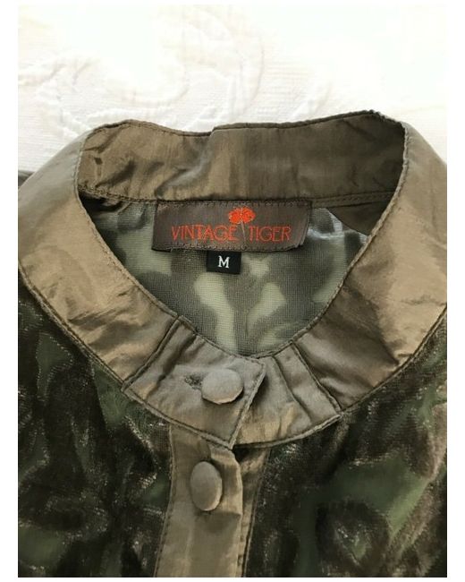 This lovely blouse is slightly longer at the back, the plain silk cuffs have a three covered button fastening, there is a plain silk tie around the waiste and patches on the shoulders.