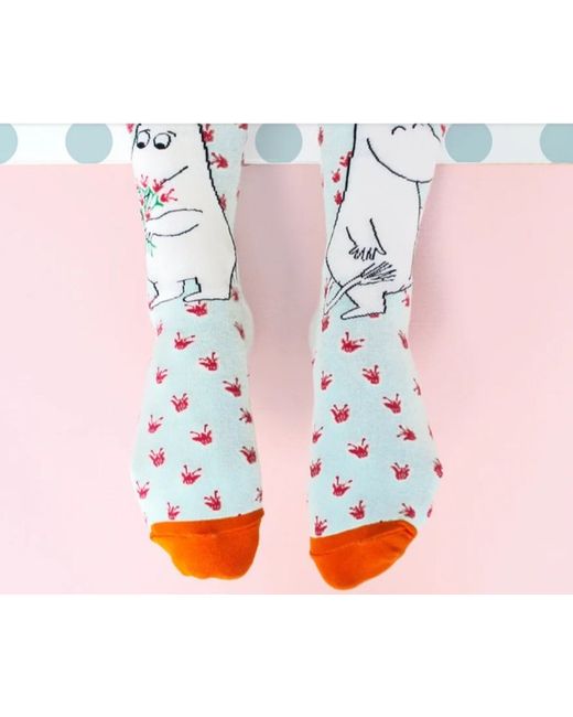 Features: These fun Moomin socks have a cute ditsy repeat pattern in playful colours. They will make a great Moomin addition to your wardrobe this season. UK size 4-7, EU size 36-40. Moomin holding a bouquet of flowers on one sock with Snorkmaiden on the other.