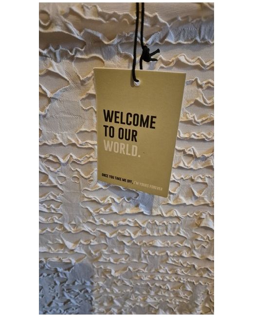 This short beige dress by Mars the Label is a strapless style, perfect for women in size 6. It's a shaped textured mini dress
