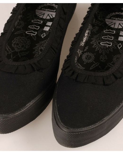 Women's Black point toe ruffle trim slip on flat canvas pumps 43D