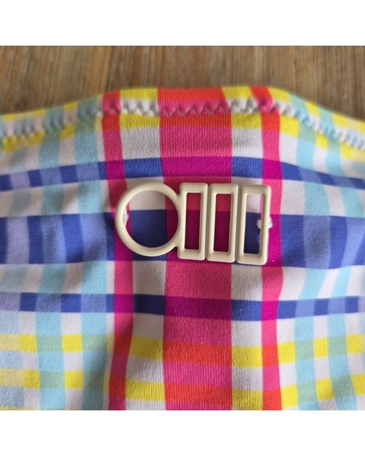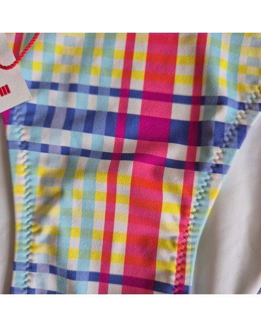 These Solid & Striped Iris Bikini Bottoms in XL size feature a multicoloured check pattern with tie-sides accents, made from a blend of nylon and elastane. The bikini bottoms are designed for regular size women and come in a one-piece style, making them a stylish and comfortable choice for the beach or pool. Lined and stretchy, these bottoms offer a flattering fit and a trendy look with their unique tie-sides detail. Perfect for adding a pop of colour to your swimwear collection and creating a chic beachy vibe.