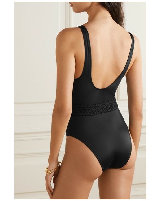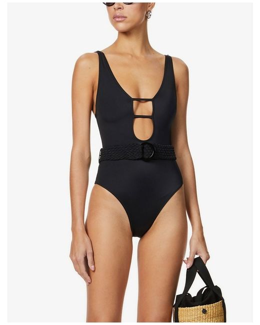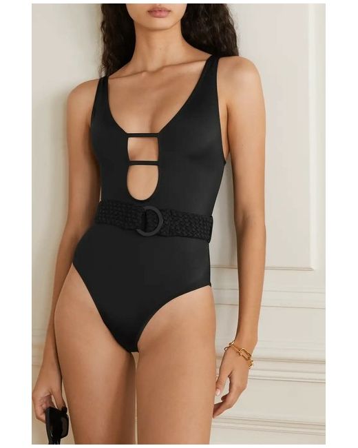 Solid & Striped's 'Beatrice' swimsuit recalls flattering, belted versions Bond girls used to wear. It's made from black stretch fabric and has a plunging cutout neckline and scooped back to reveal the perfect amount of skin.