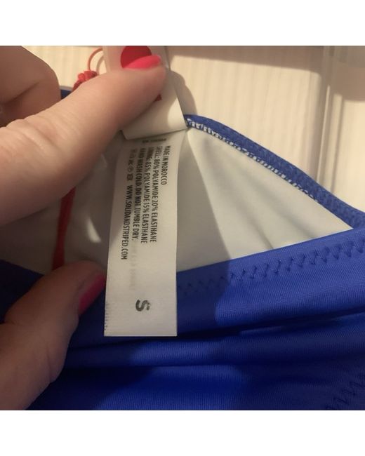 Experience the comfort and style of Solid & Striped Bikini Bottoms in a refreshing shade of blue, tailored for the modern woman. Crafted from a blend of polyamide and elastane, these bottoms promise a snug fit while ensuring quick-drying capabilities, perfect for an effortless transition from beach to brunch. Designed with a minimalist aesthetic, these bikini bottoms are without patterns, embodying a timeless appeal. They are available in a size S, adhering to regular sizing standards. With attention to detail, the garment features a discreet logo accent, enhancing its chic allure, and is manufactured in Morocco, ensuring quality craftsmanship.