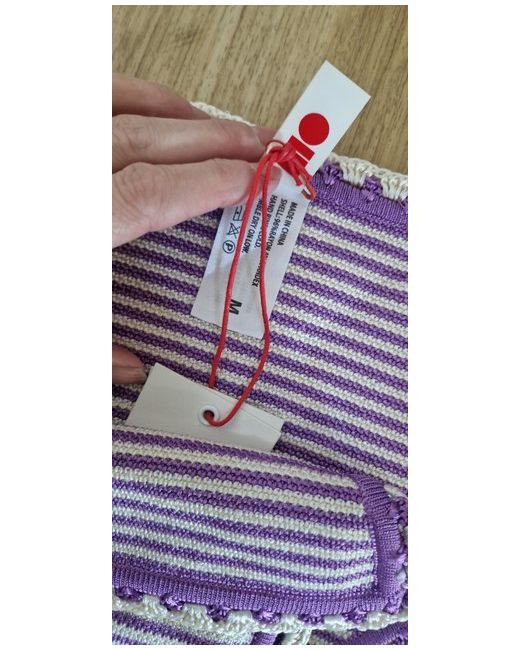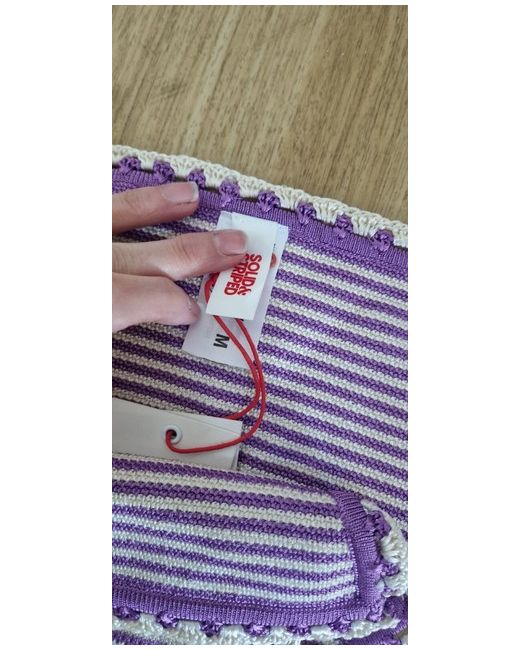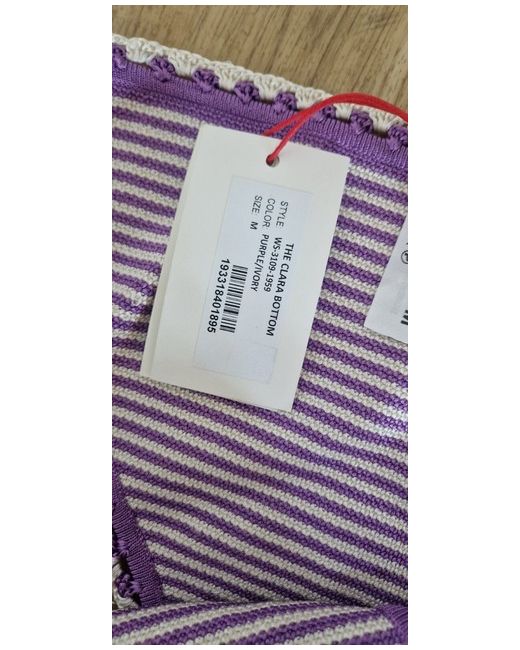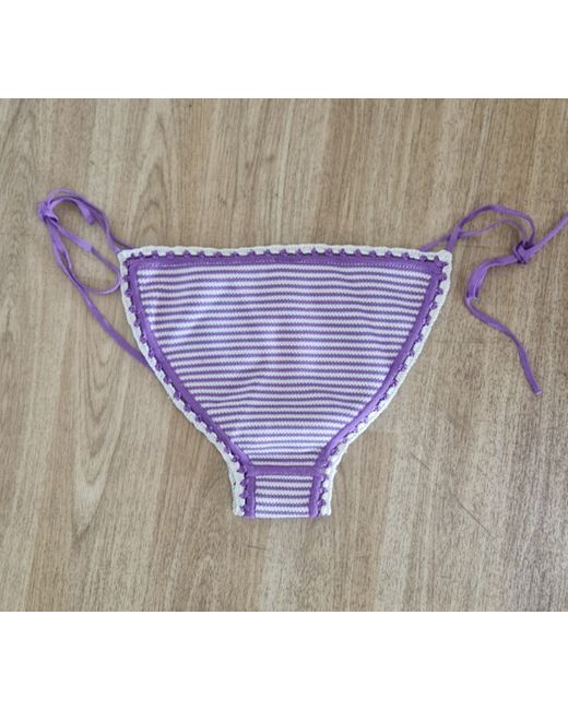 Knitted style. Solid & Striped bikini. Halter neck top. Purple and ivory in colour. Tie sides briefs.