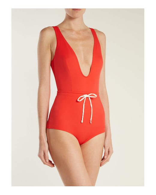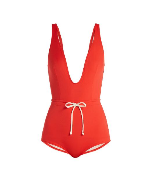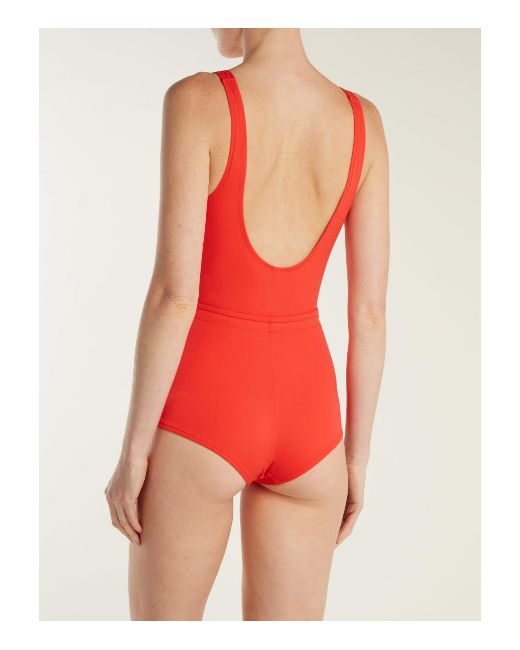 Solid & striped - new-york-based swimwear label solid & striped's playful aesthetic is evident here with this red the edie swimsuit. Slip on oversized sunglasses and pair it with a diaphanous kaftan to channel bygone era elegance.