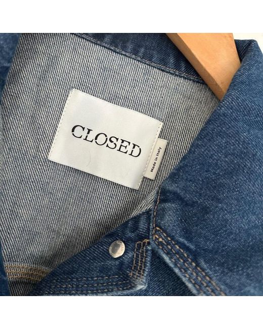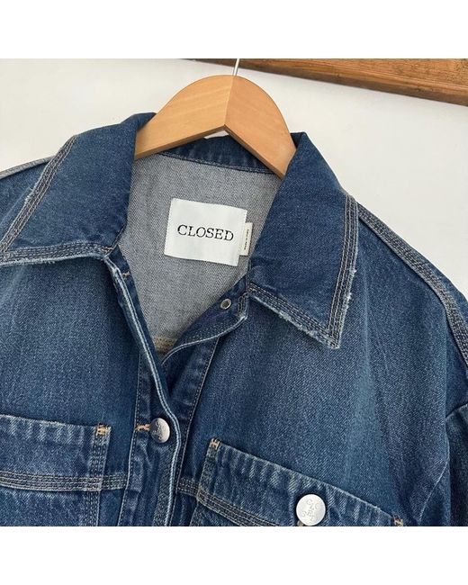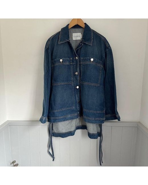 Closed denim oversized jacket RRP £804 size small brand new without tags 🏷️ drawstring-hem denim jacket Made in Italy Highlights blue cotton recycled cotton denim classic collar chest flap pockets long sleeves front button fastening drawstring hem high-low hem.