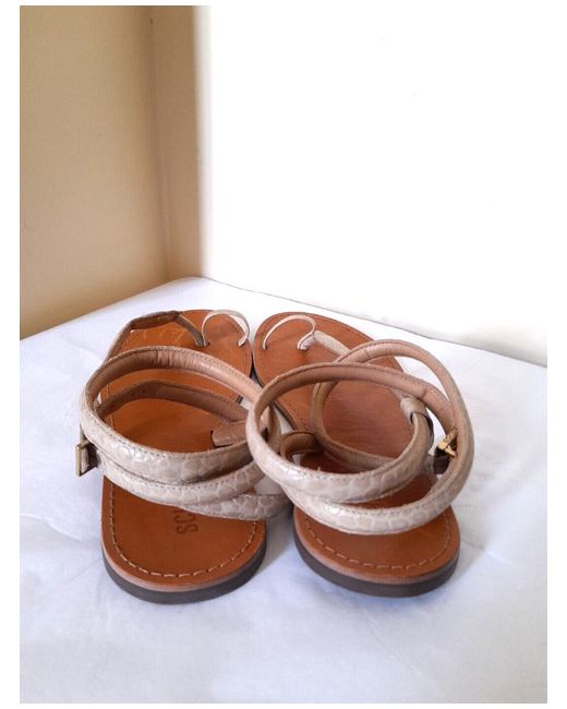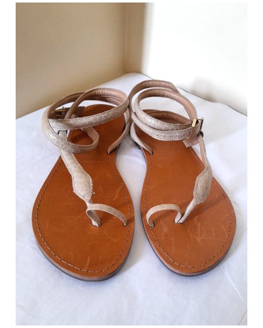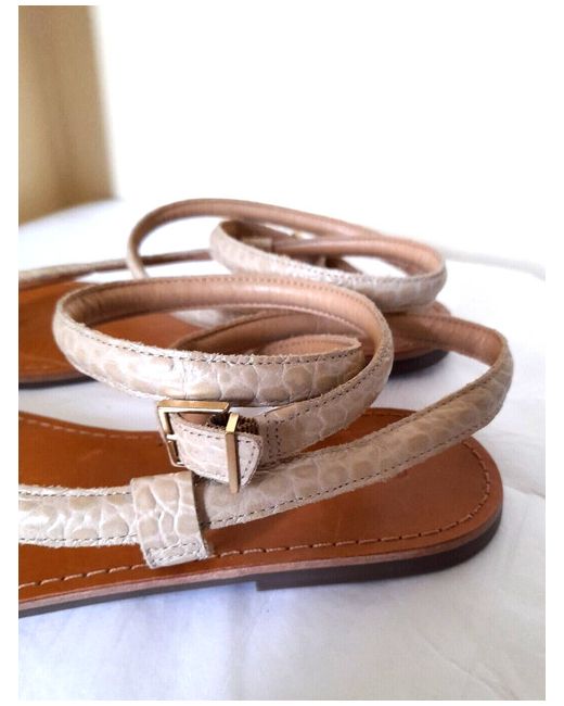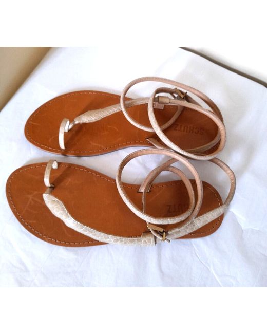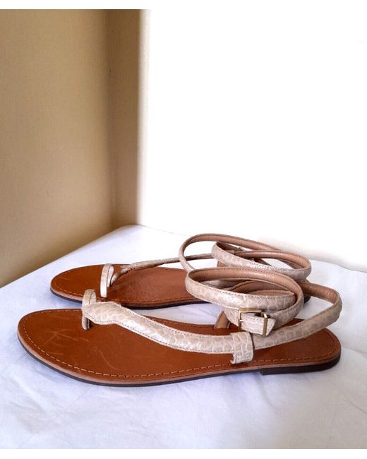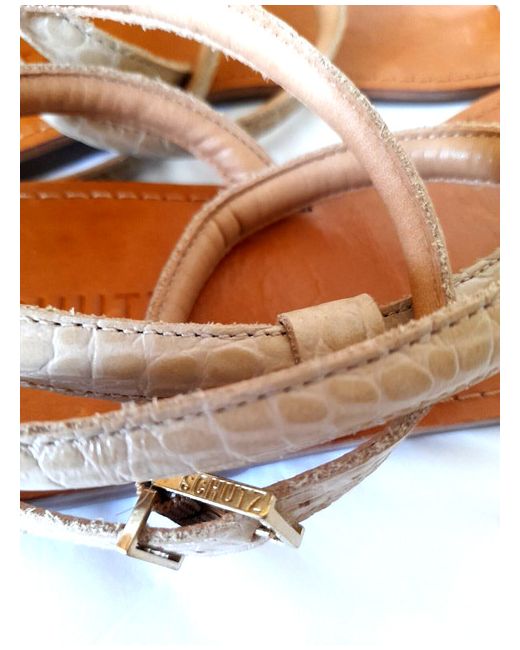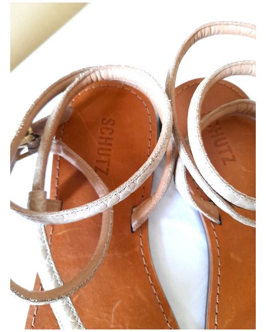Schutz Strappy Flat Faux Leather Python Sandals - Textured beige faux leather python print upper - Long ankle strap -Logo buckle / adjustable fastening - Bridged toe bar - Flat sole - SIZE EU 41 / BRA 39 / UK 8 NEW!